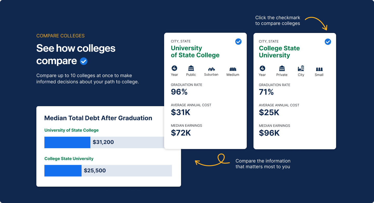 College Scorecard is a U.S. Department of Education tool for students, parents, and counselors to compare the cost and value of higher education institutions.